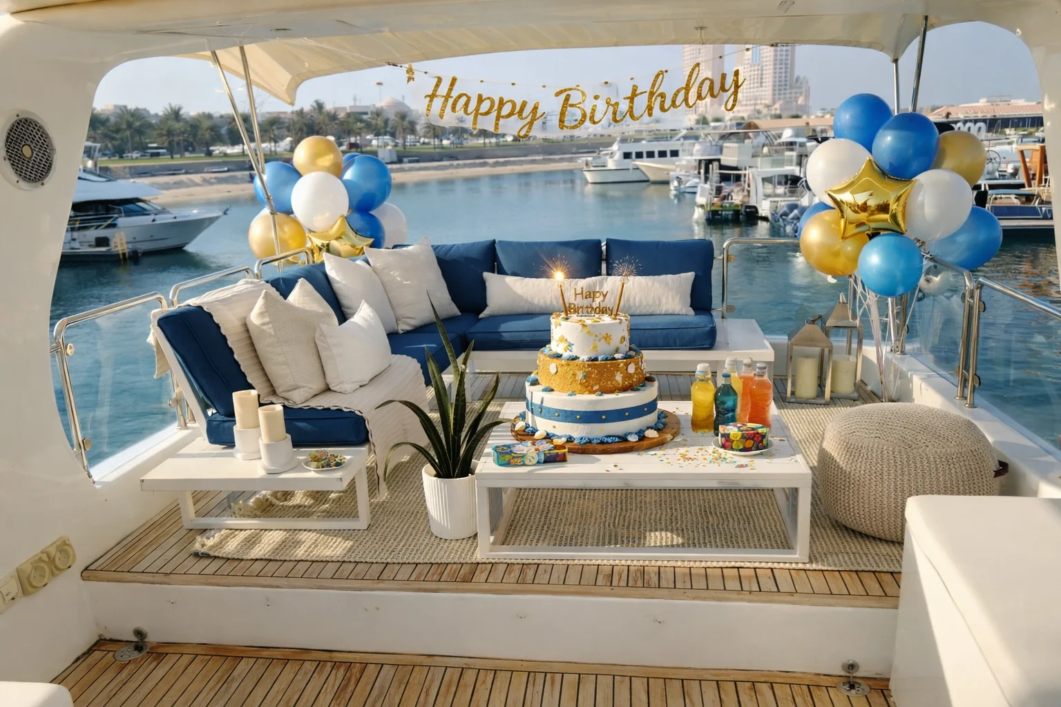Celebrate in Style Across the Arabian Sea Make your special day truly unforgettable by hosting your birthday party on a luxury yacht. Whether you are planning an intimate gathering with close friends or a vibrant celebration, Goldwater Yacht provides the perfect backdrop. From customized decorations and premium catering to a professional crew dedicated to your comfort, we turn your birthday vision into a spectacular reality against the iconic Dubai skyline.